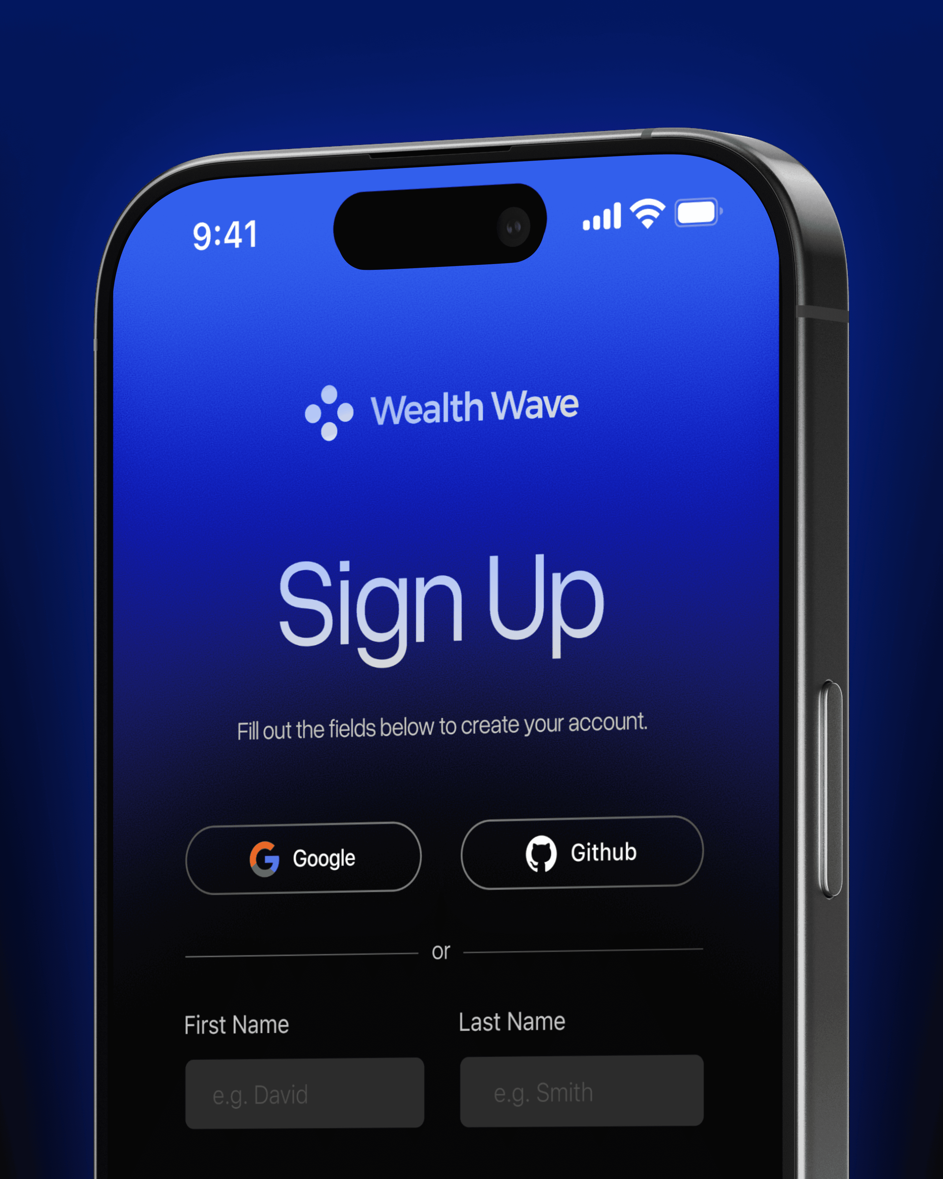 Onboarding Page for a Wealth Management App